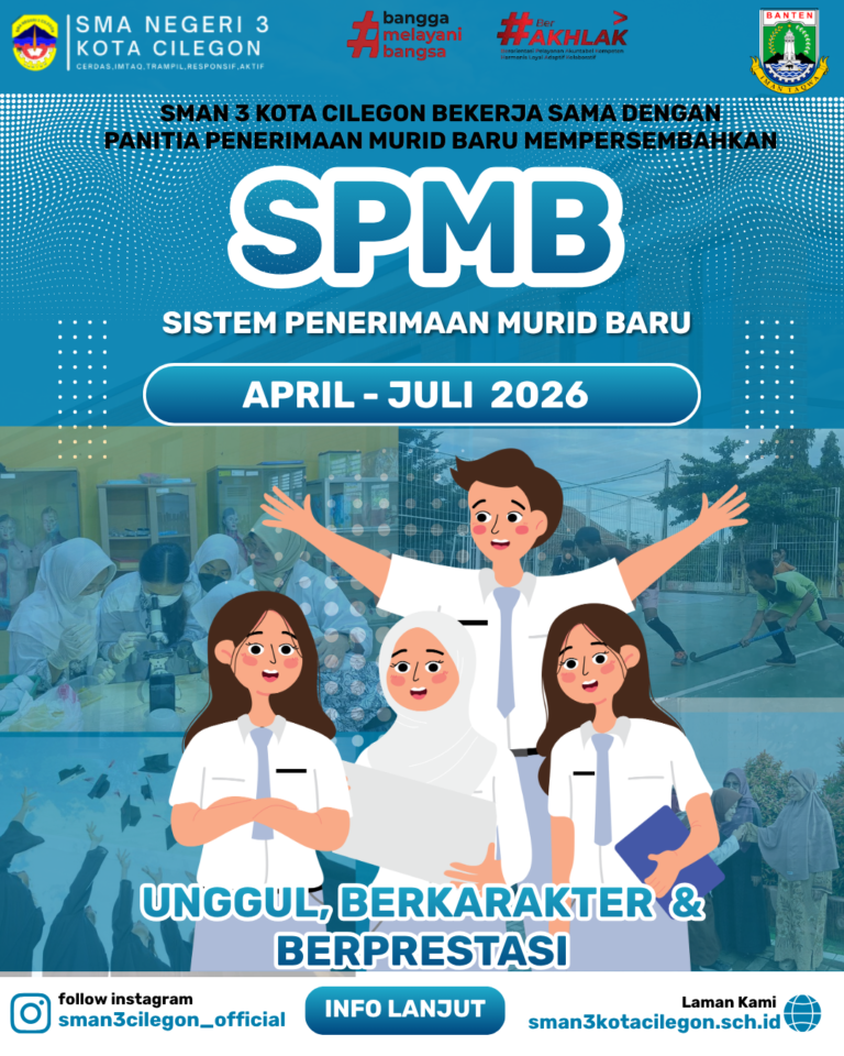 Harapan kami, website ini tidak hanya menjadi sumber informasi tentang kegiatan dan perkembangan SMA Negeri 3 Kota Cilegon, tetapi juga memberikan manfaat yang lebih luas, terutama dalam bidang pendidikan dan ilmu pengetahuan. Semoga platform ini dapat mempererat hubungan sekolah dengan masyarakat serta mendukung upaya bersama dalam menciptakan generasi penerus yang unggul dan berkarakter.